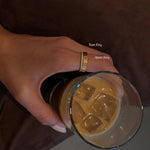 A minimal band with a romantic twist. Engraved with tiny hearts and finished with a high polish, it’s hard not to notice. Waterproof & skin-friendly, it's cute on its own or stacked, and even cuter as a gift.