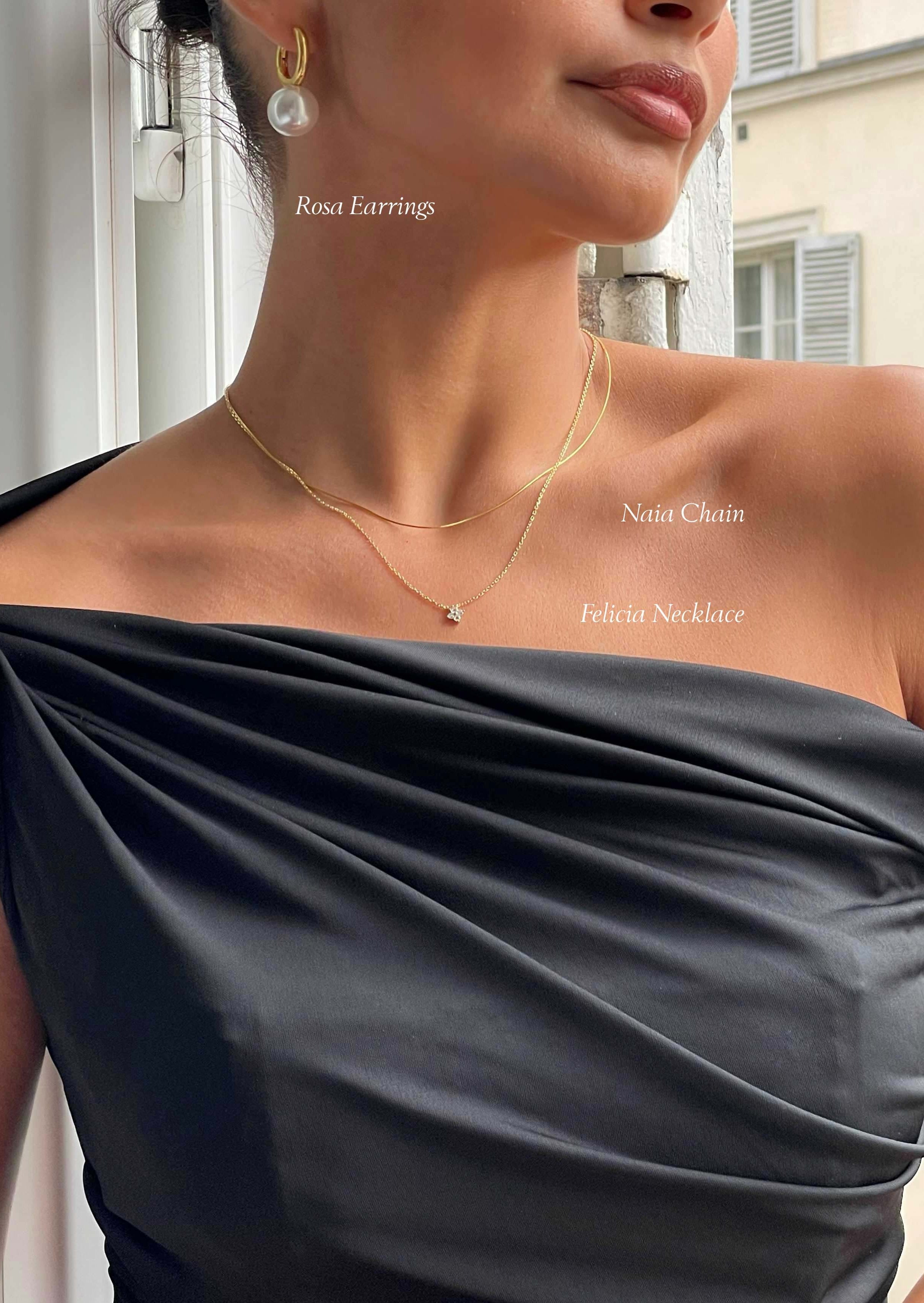 Inspired by glistening seas and golden hour light. Dainty, sparkly, and loved by many. The Felicia Necklace makes the perfect gift or everyday piece. Waterproof and skin-friendly.