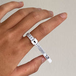 1. Simply push the end through the fastener to form a ring shape, and slide it onto the finger you wish to measure.